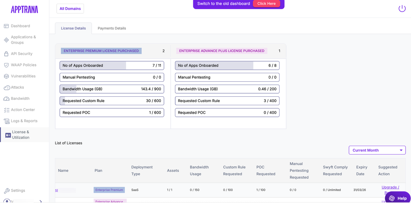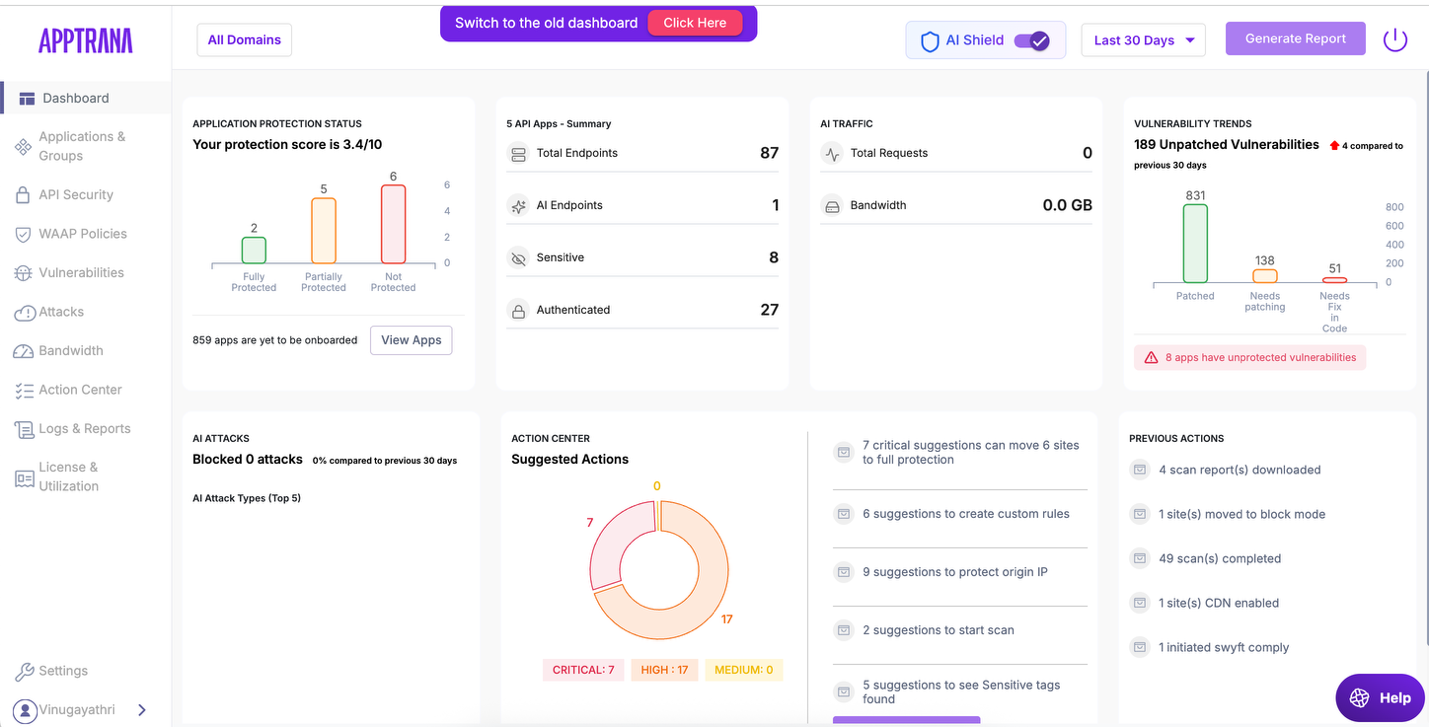 AppTrana→ Dashboard