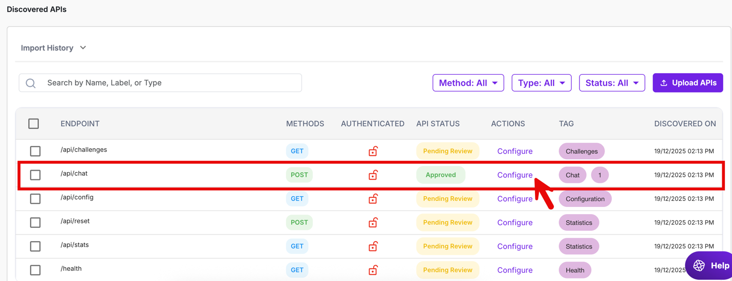 Tag these endpoints as AI API. This tagging determines which endpoints receive AI-specific protection.