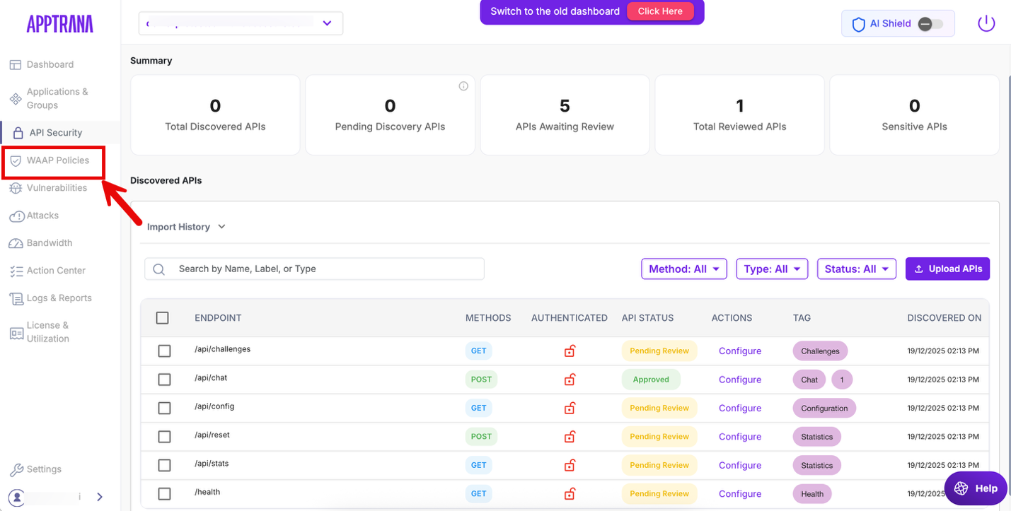 Navigate to WAAP Policies.