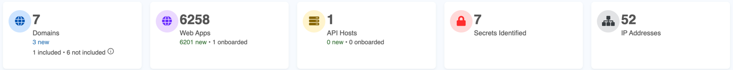 | IP Addresses | Provides a count of the IP addresses related to the monitored assets, helping to track exposure at the network level. |